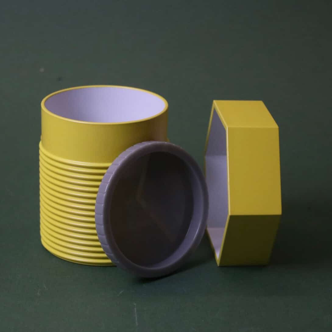 Det yttre locket, multens ”huvud” sitter endast löst på behållaren.